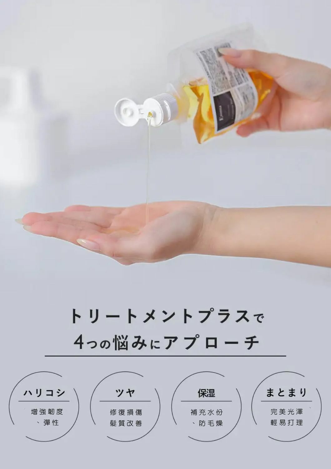 含有高濃度水解角蛋白。營養能徹底滲透、吸收、修護受損髮質,同時增加彈性和保濕力,令髮質緊緻、絲滑、亮澤。
