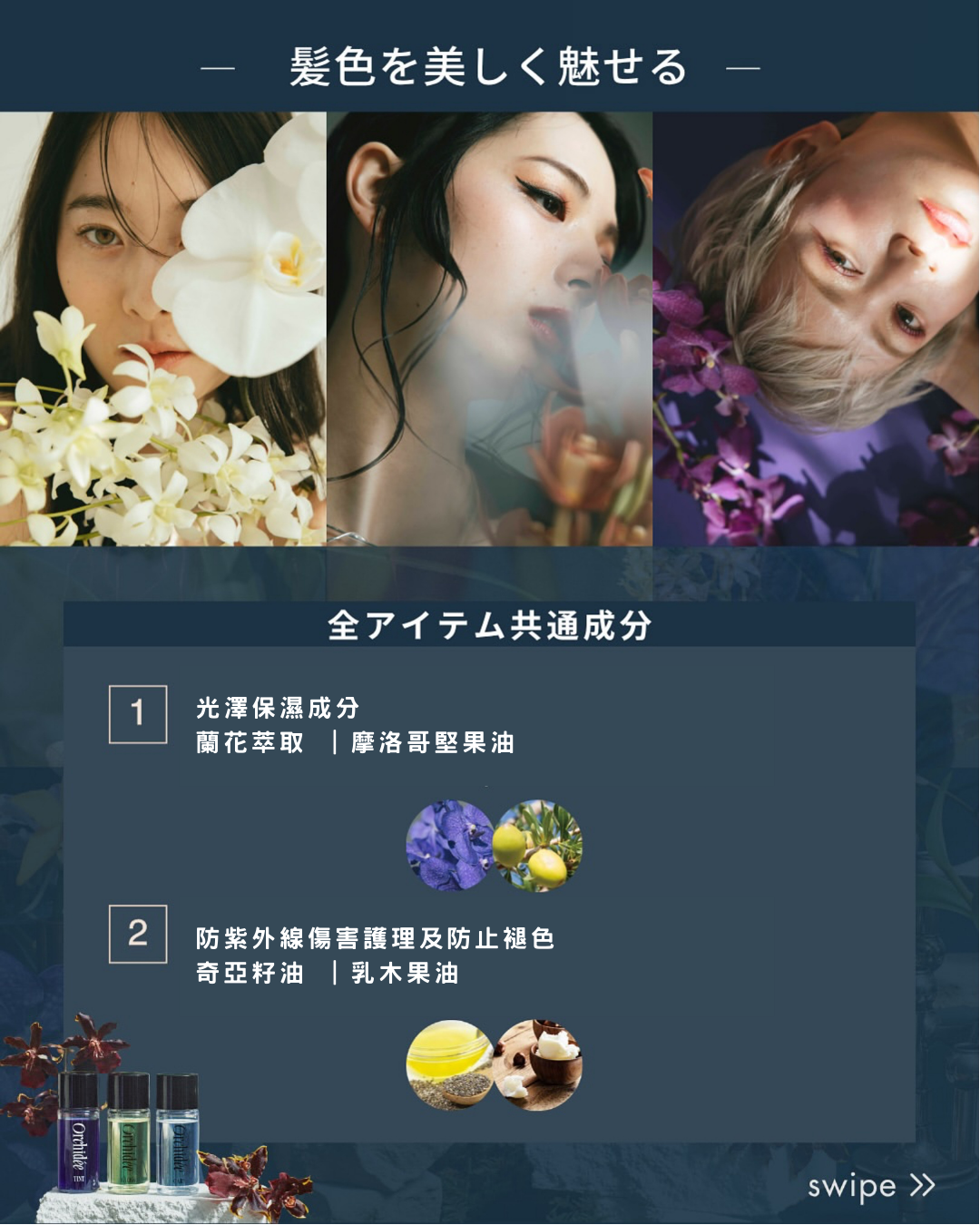 含有維生素C衍生物*1和芥菜酸*2 的髮油,從內到外呵護您的頭髮。