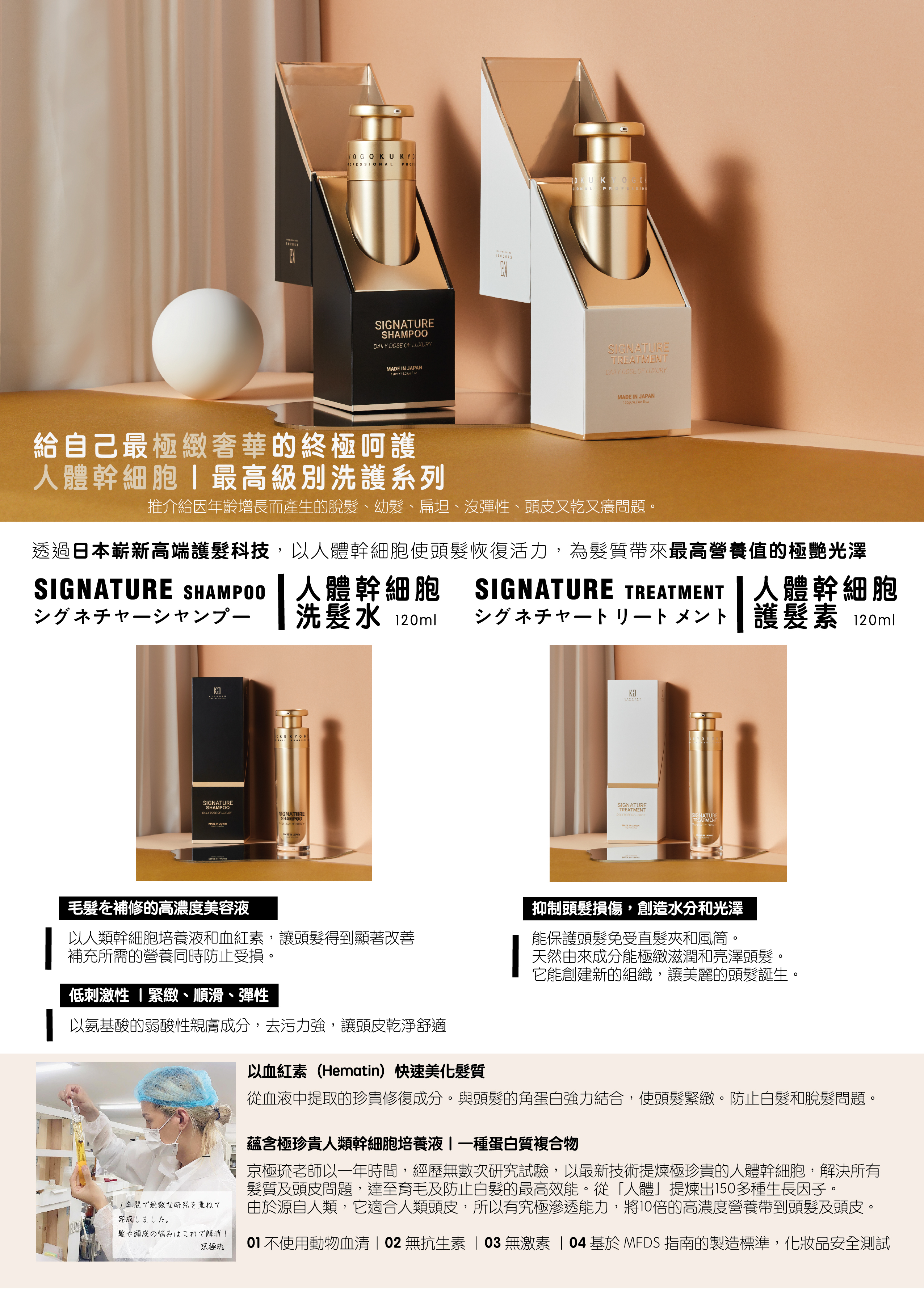 透過日本嶄新高端護髮科技,以人體幹細胞使頭髮恢復活力,為您的髮質帶來最高營養值的極艷光澤