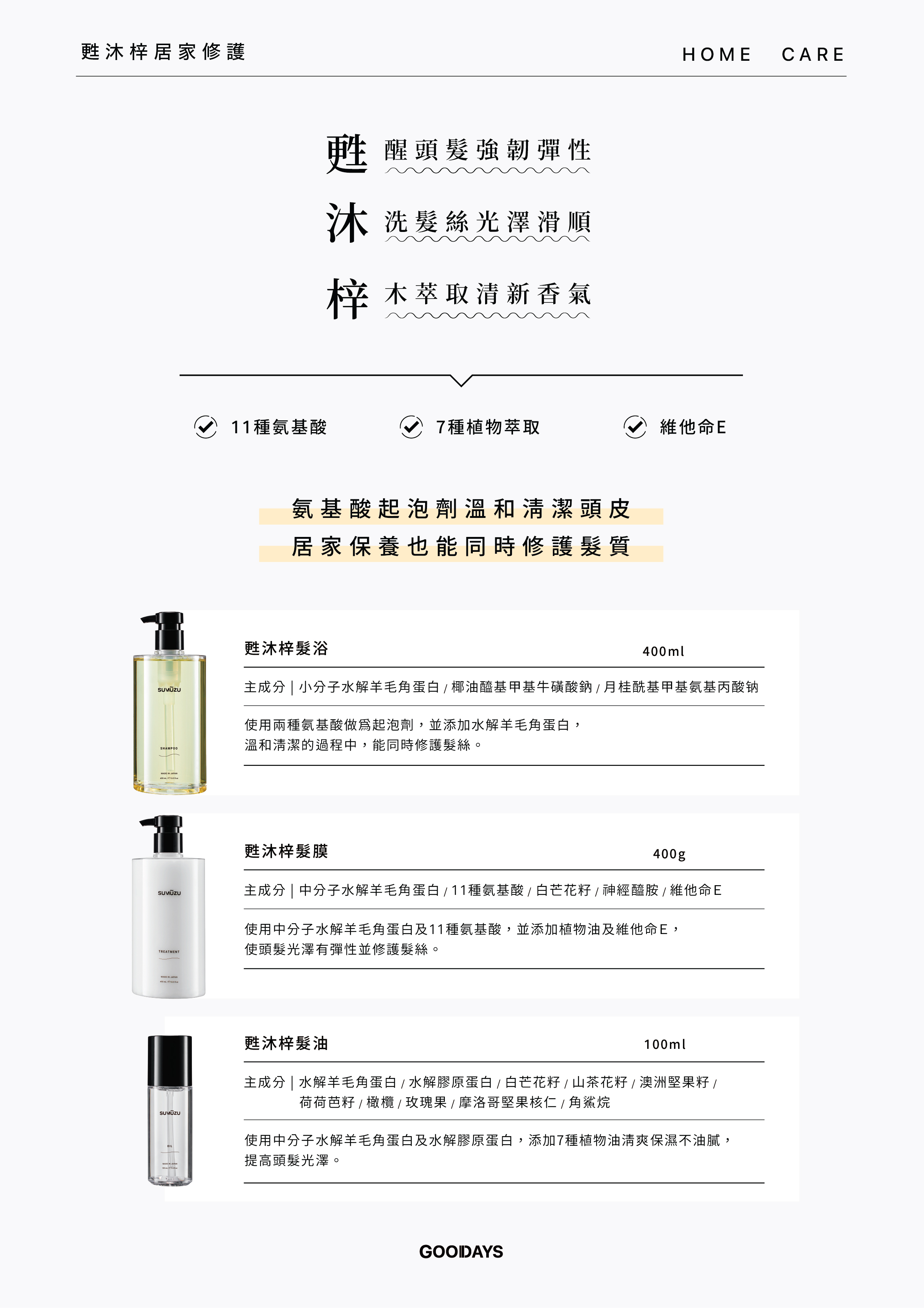 使用中分子水解羊毛角蛋白及水解膠原蛋白,添加7種植物油清爽保濕不油膩,
